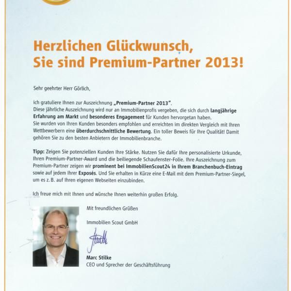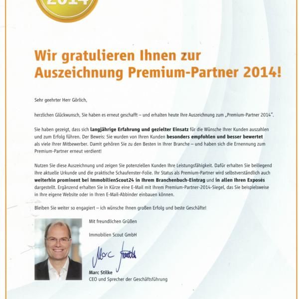 2015 Ausgezeichneter Premiumpartner von Immobilienscout24.de